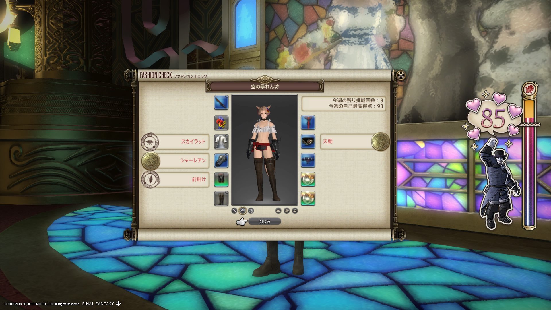 ・テーマのない左側にも染色の加点がある(装備自体はなんでもいい)