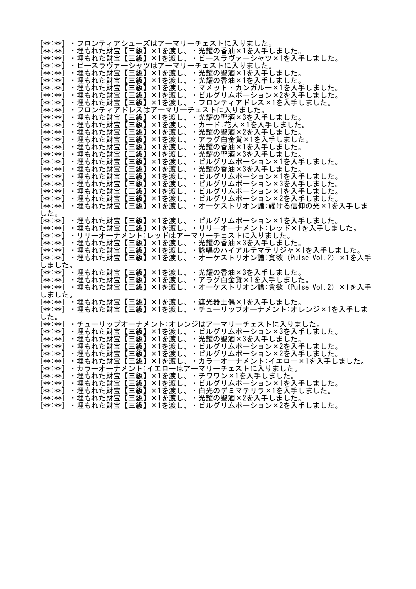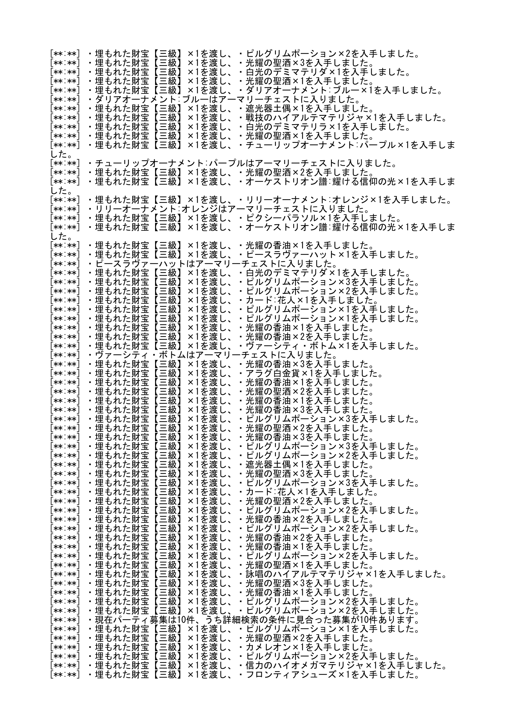 まずは3級100個です ログを載せようとしましたが、ロードストーンの仕様で文字数が10,000文字以内でなければならないそうで、今回ログはPNG形式(画像データ)です