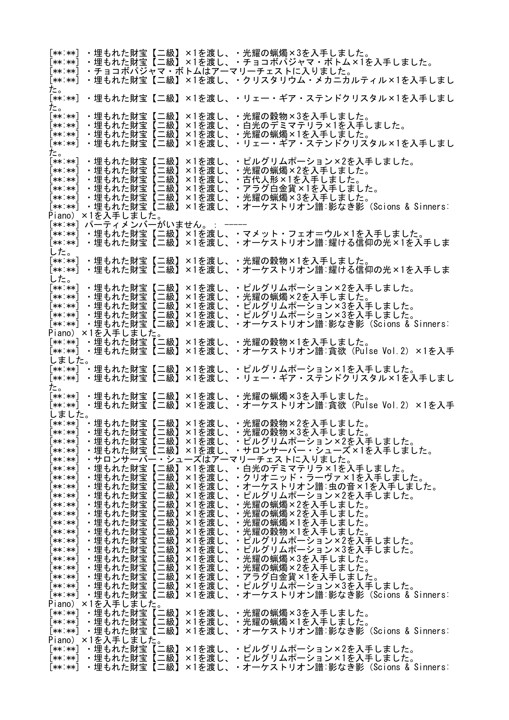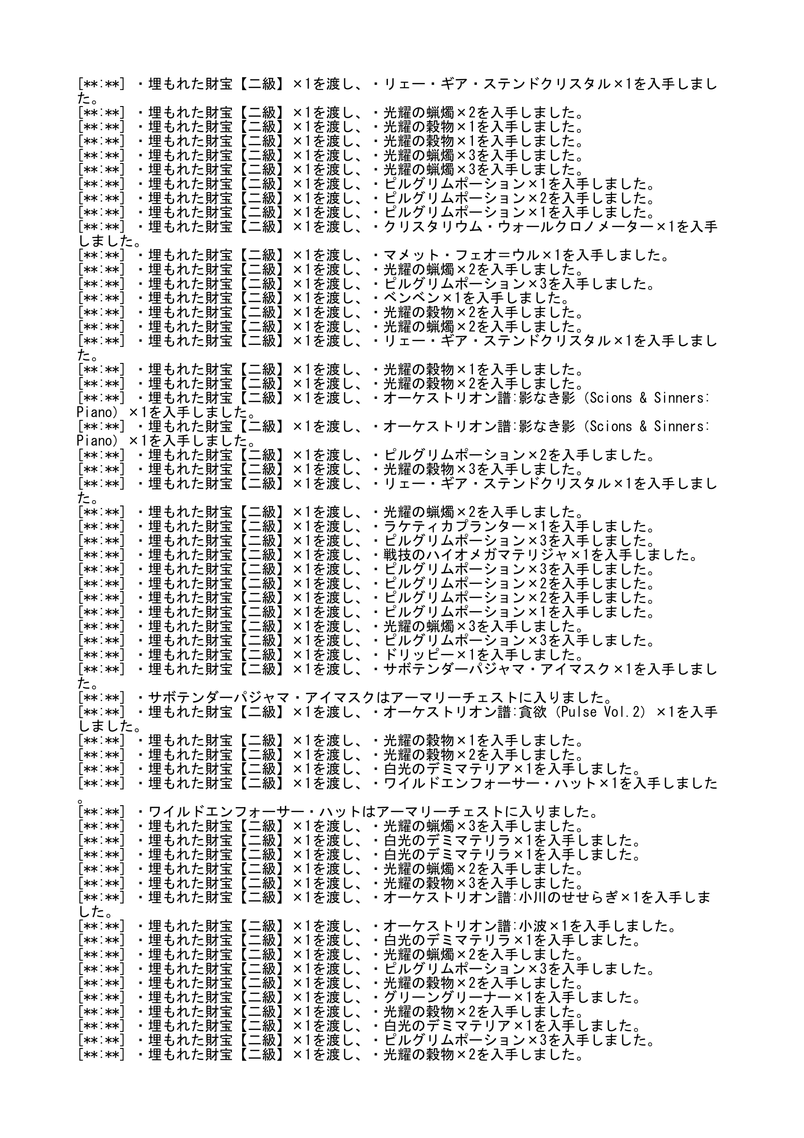 輝かしき財宝は、手帳の報酬で、これはまぁ、どうせ「ピルグリム・トラバースの石片」なので対象外とさせていただきました。