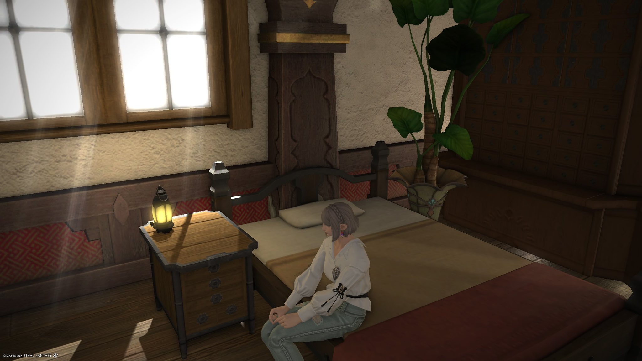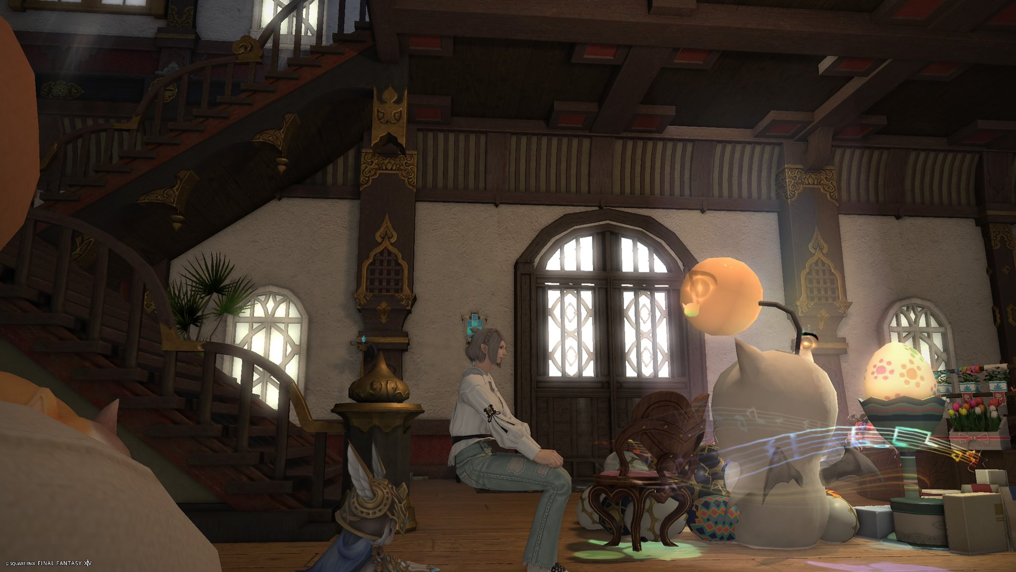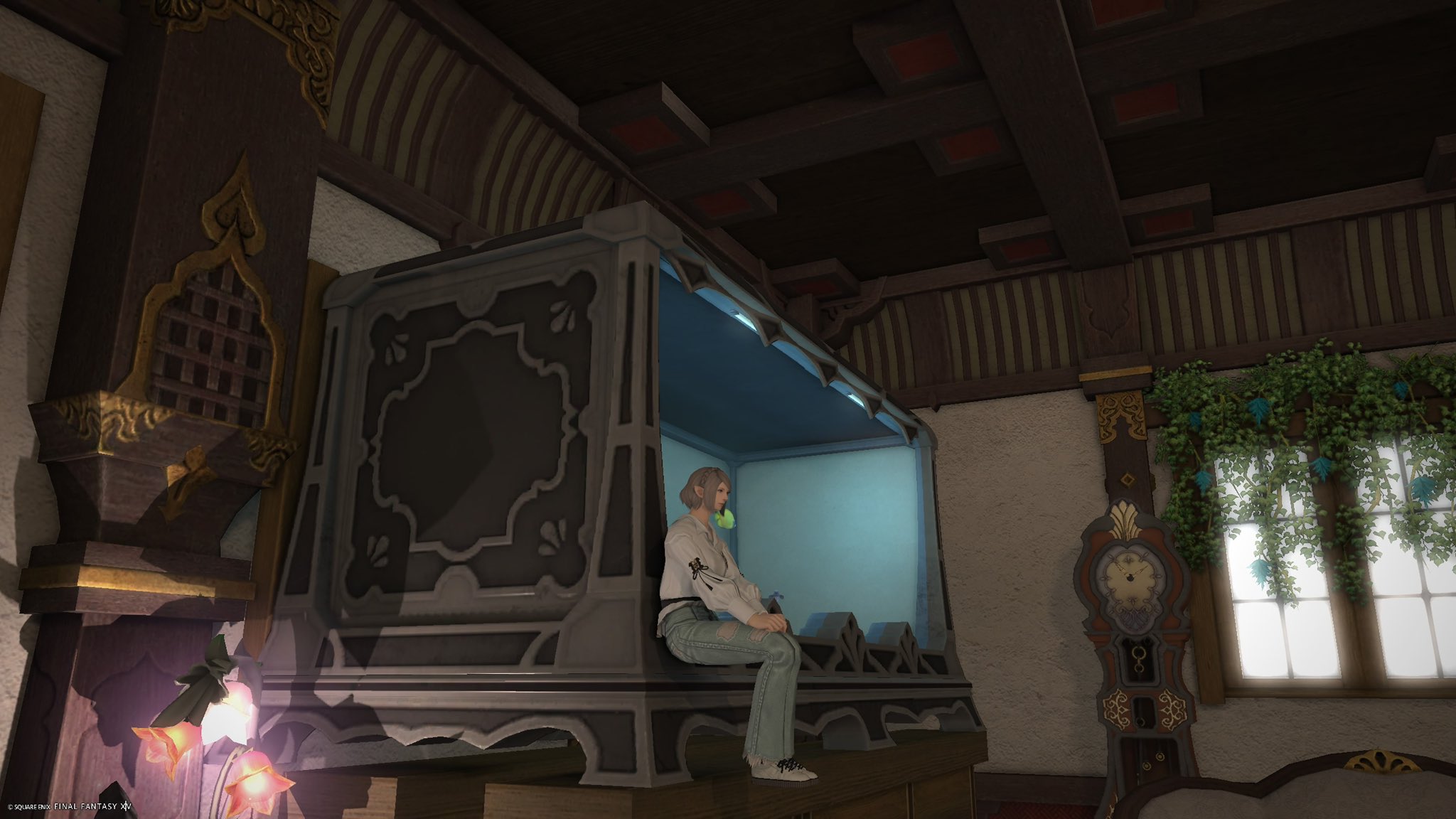 そういう仕様なのか座るエモートではスフェーン様の隣に座れず重なってしまう!なので地面に座るエモで上半身だけ写してごまかしてます〜