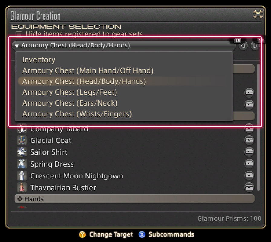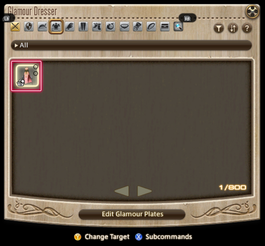 * Items cannot be placed in the glamour dresser if their durability is below 100%.