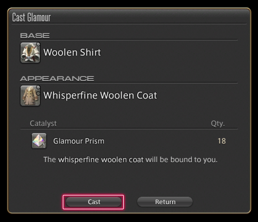 You can also select Cast Glamour from an item's subcommands to start the process.