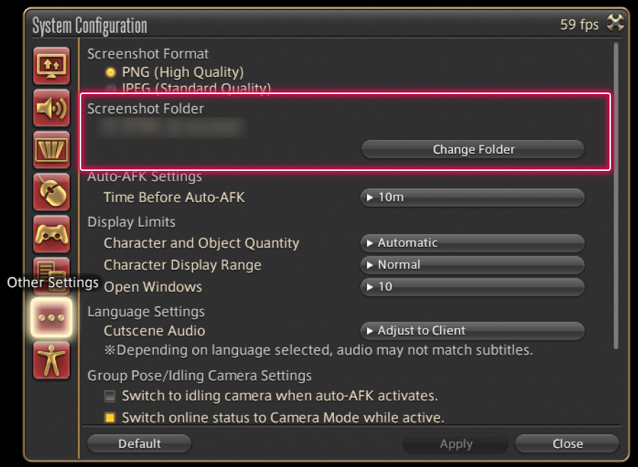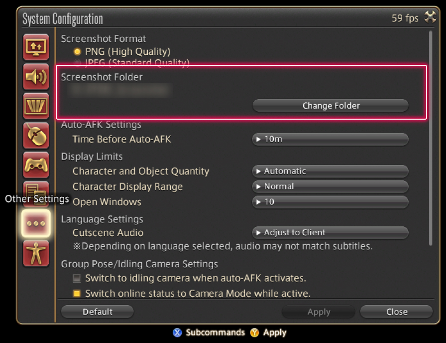 You can confirm the location of the screenshot folder by selecting the Other Settings tab of the System Configuration menu.